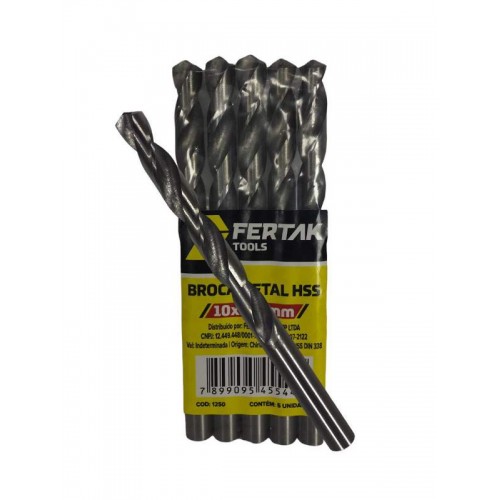 • BROCA AÇO RÁPIDO 10MM PACOTE COM 5 PEÇAS FERTAK