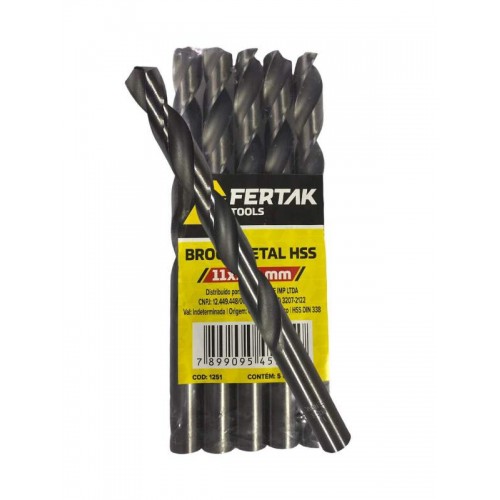 • BROCA AÇO RÁPIDO 11MM PACOTE COM 5 PEÇAS FERTAK