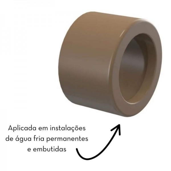 A Bucha de Redução Curta Amanco é ideal para instalações de água fria permanentes e embutidas, atendendo projetos residenciais, comerciais e industriais.