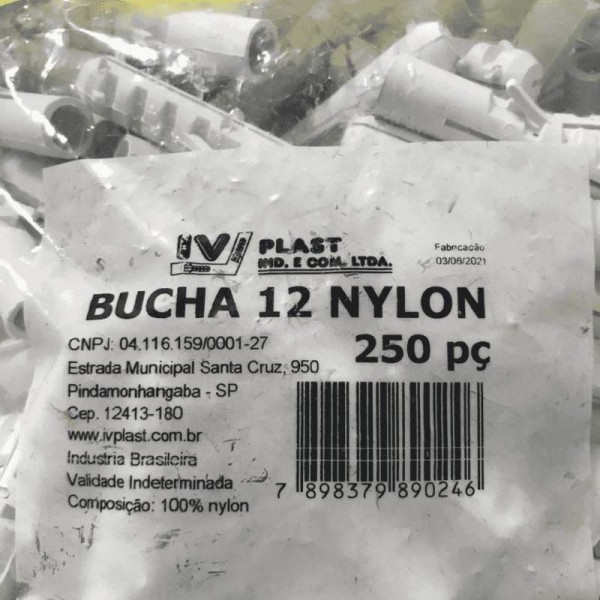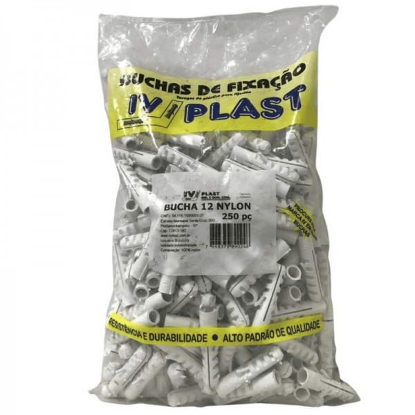 01 pacote com 250 peças de Bucha Nylon 12mm Iv Plast