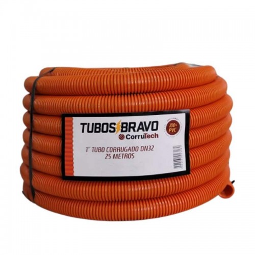 • CONDUITE ELETRODUTO CORRUGADO 32MM (1") LARANJA ANTICHAMAS ROLO COM 25 METROS BRAVO