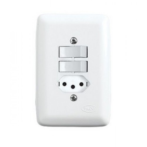BRANCO CONJUNTO 1 INTERRUPTOR SIMPLES + 1 PARALELO + TOMADA 2 POLOS +TERRA COM PLACA 20290 ILUMI