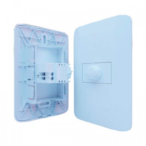 O Conjunto 4X2 Variador Dimmer Rotativo Bivolt possui um ajuste, localizado na parte traseira que permite a configuração da intensidade mínima dimerizável. Com a carga ligada, no início do curso do botão rotativo, configurar a luminosidade mínima desejada.