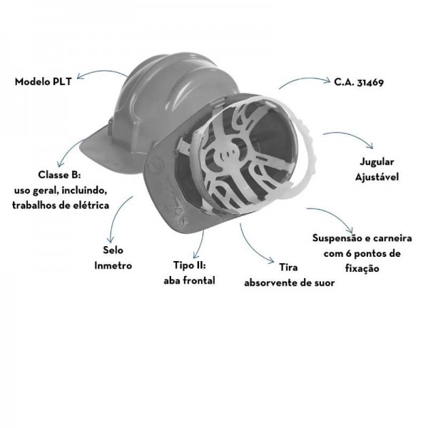 O Capacete de Segurança PLT é fabricado em polietileno de alta densidade, oferecendo excelente resistência e durabilidade para proteção da cabeça contra impactos e riscos elétricos. Possui copa com estrias para maior robustez estrutural e slots laterais que permitem o acoplamento de protetores faciais e auditivos.