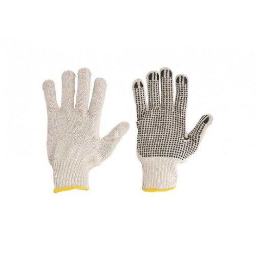 Luva Tricotada em algodão pigmentada com pontos em PVC . Luva de boa resistência contra agentes mecânicos e abrasivos, totalmente sem costuras. Super Confortável com uma boa destreza e sensibilidade para uma boa proteção a mão do trabalhador.