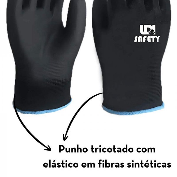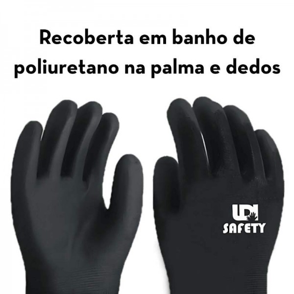 Recoberta em poliuretano na região da palma e dos dedos, oferecendo excelente