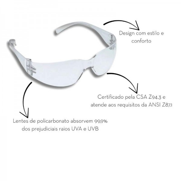 Os Óculos de Segurança 3M Virtua oferecem proteção ocular de alto desempenho sem abrir mão do conforto e da boa visibilidade. Fabricados em policarbonato de alta resistência, contam com visor, apoio nasal e proteção lateral moldados em peça única, garantindo robustez e praticidade no uso diário.