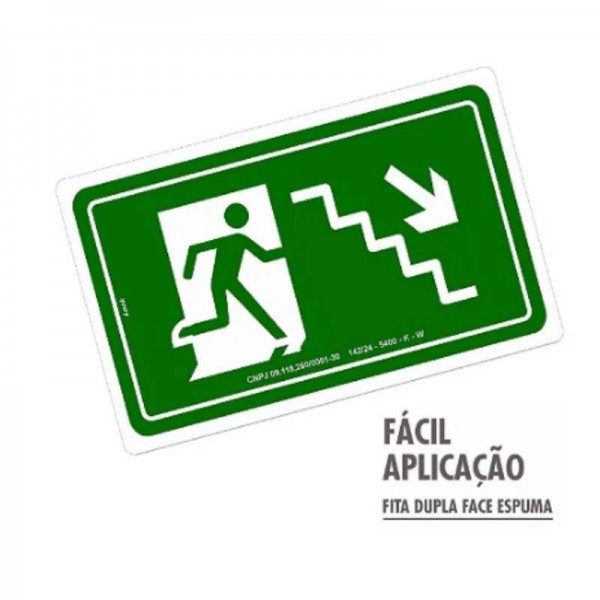 Placa de Sinalização de Emergência FotoLuminescente Escada Desce a Direita
