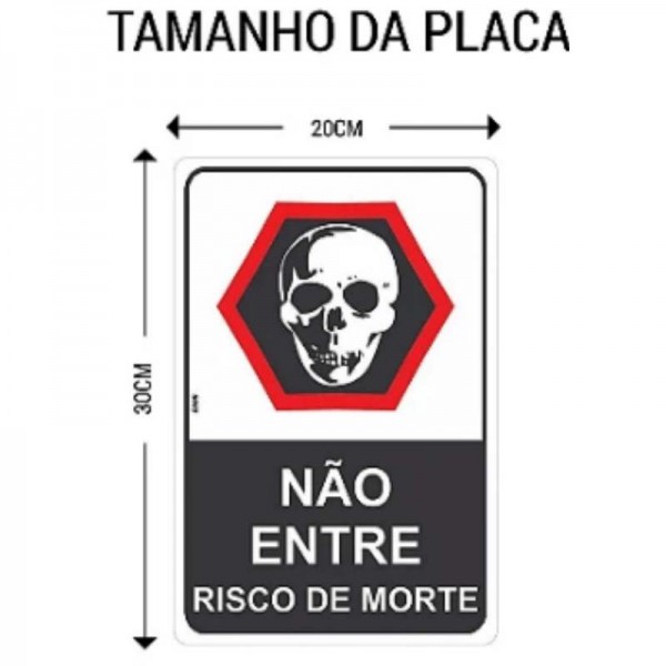Placa de Sinalização Cuidado Não Entre Risco de Morte Caveira
