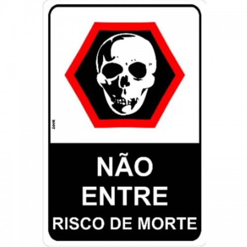 Texto: NÃO ENTRE RISCO DE MORTE (PICTOGRAMA CAVEIRA)