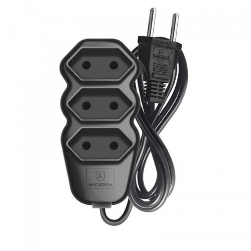 • EXTENSÃO PARALELO 3 SAÍDAS 2X0,75MM² COM 5 METROS (2P) 10A BIVOLT PRETO MEGATRON