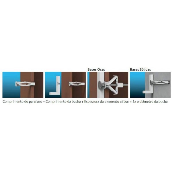 Abas laterais que fixam na parede e impedem que a bucha gire ao dar o torque no parafuso