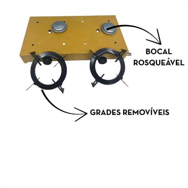Fogão 2 Bocas Caramelo Baixa Pressão – Uso Doméstico, Camping e Pesca