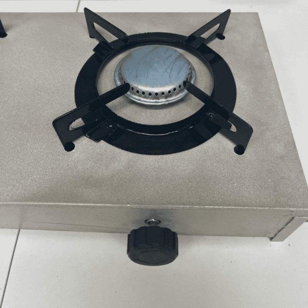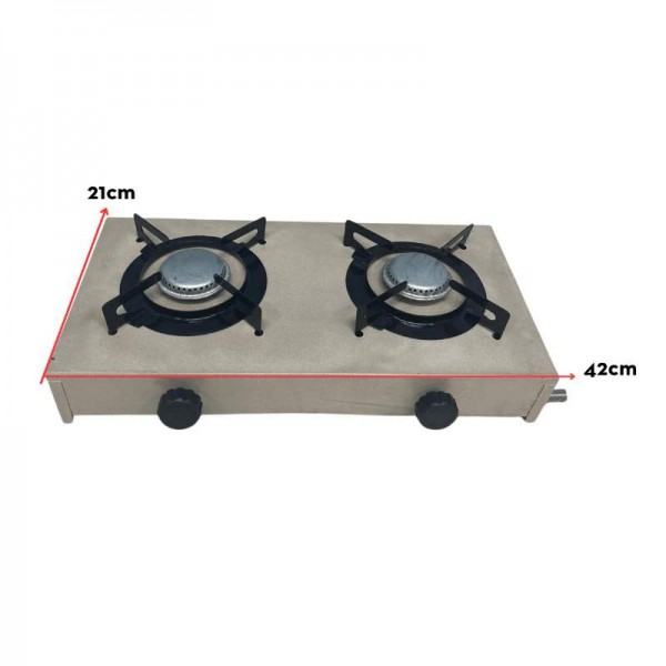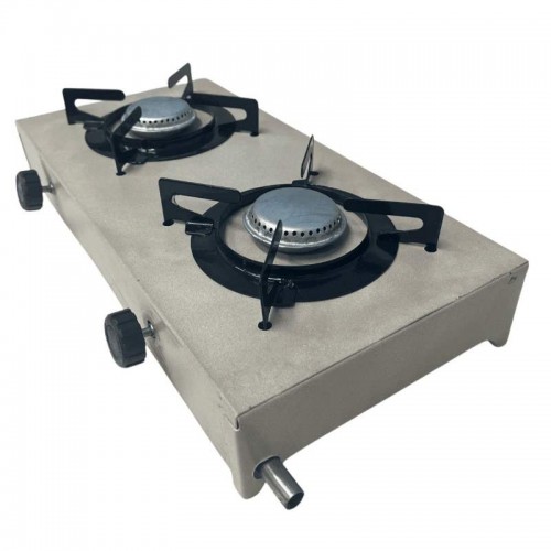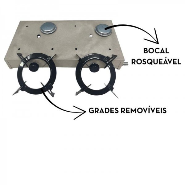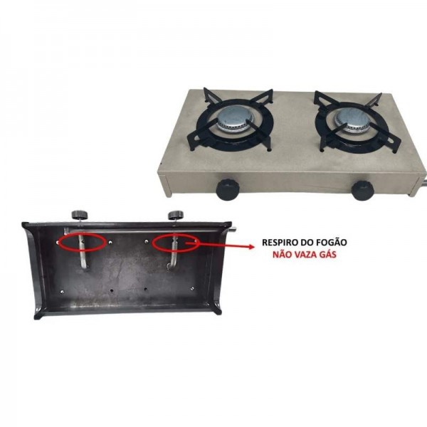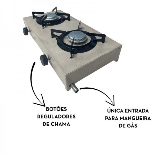 • FOGÃO PORTÁTIL BEGE BAIXA PRESSÃO 2 BOCAS CAMPING/CAMINHONEIRO