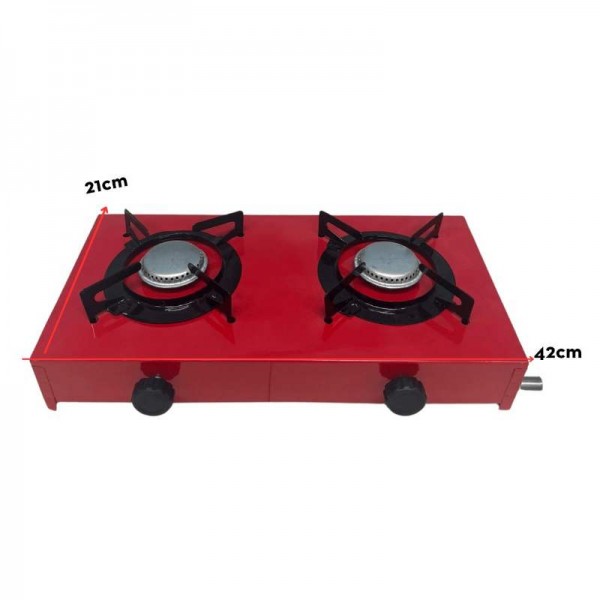 • FOGÃO PORTÁTIL VERMELHO BAIXA PRESSÃO 2 BOCAS CAMPING/CAMINHONEIRO