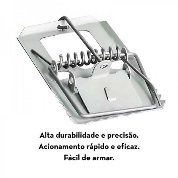 Fabricada em chapa de ferro galvanizada, conta com mola em aço que garante acionamento rápido e eficaz. Indicada apenas para captura.