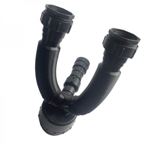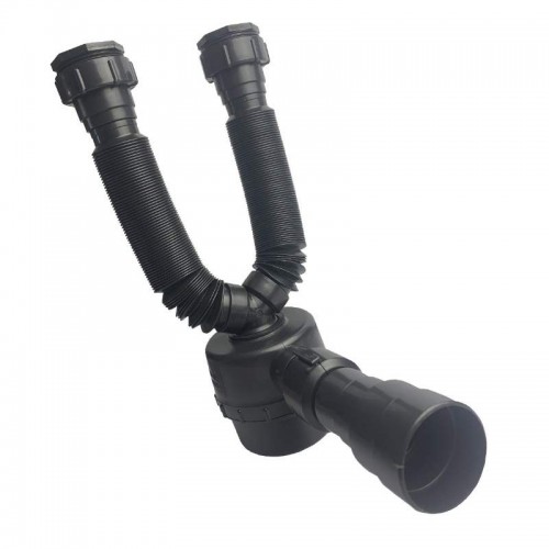 • SIFÃO CORRUGADO PRETO COM COPO DUPLO 4X1 PORCA PVC FERE REF. 7.02.419