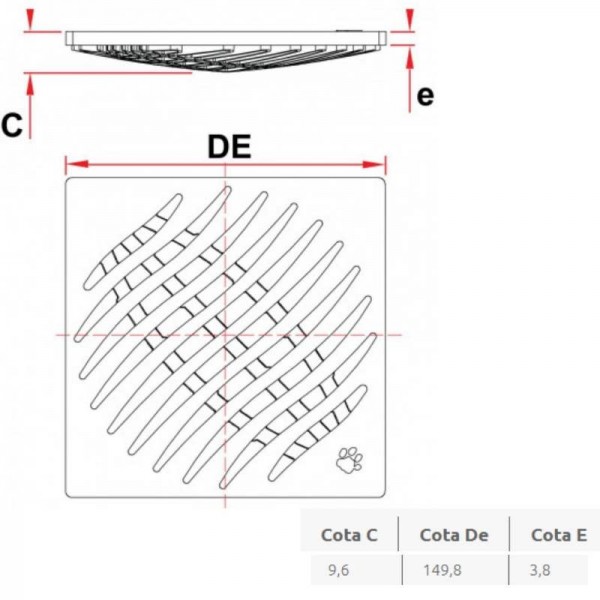 Grelha DN 150 Quadrada Alumínio Tigre - 15cm
